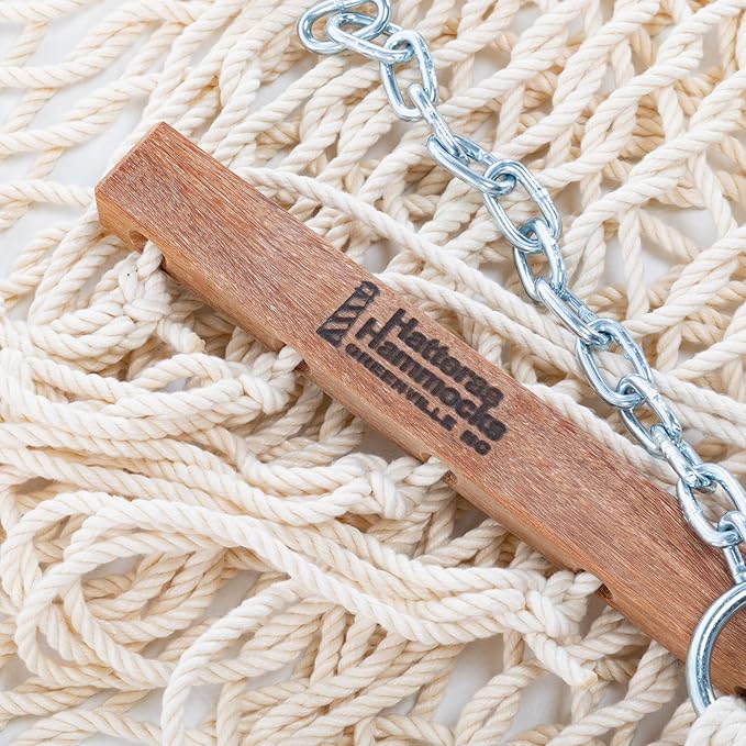 Hatteras Hammocks Deluxe Oatmeal Duracord Rope Hammock with Free Extension Chains & Tree Hooks, Handcrafted in The USA, 450 LB Weight Capacity, 13 ft. x 60 in