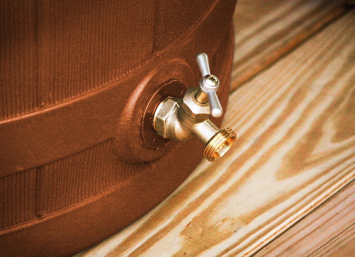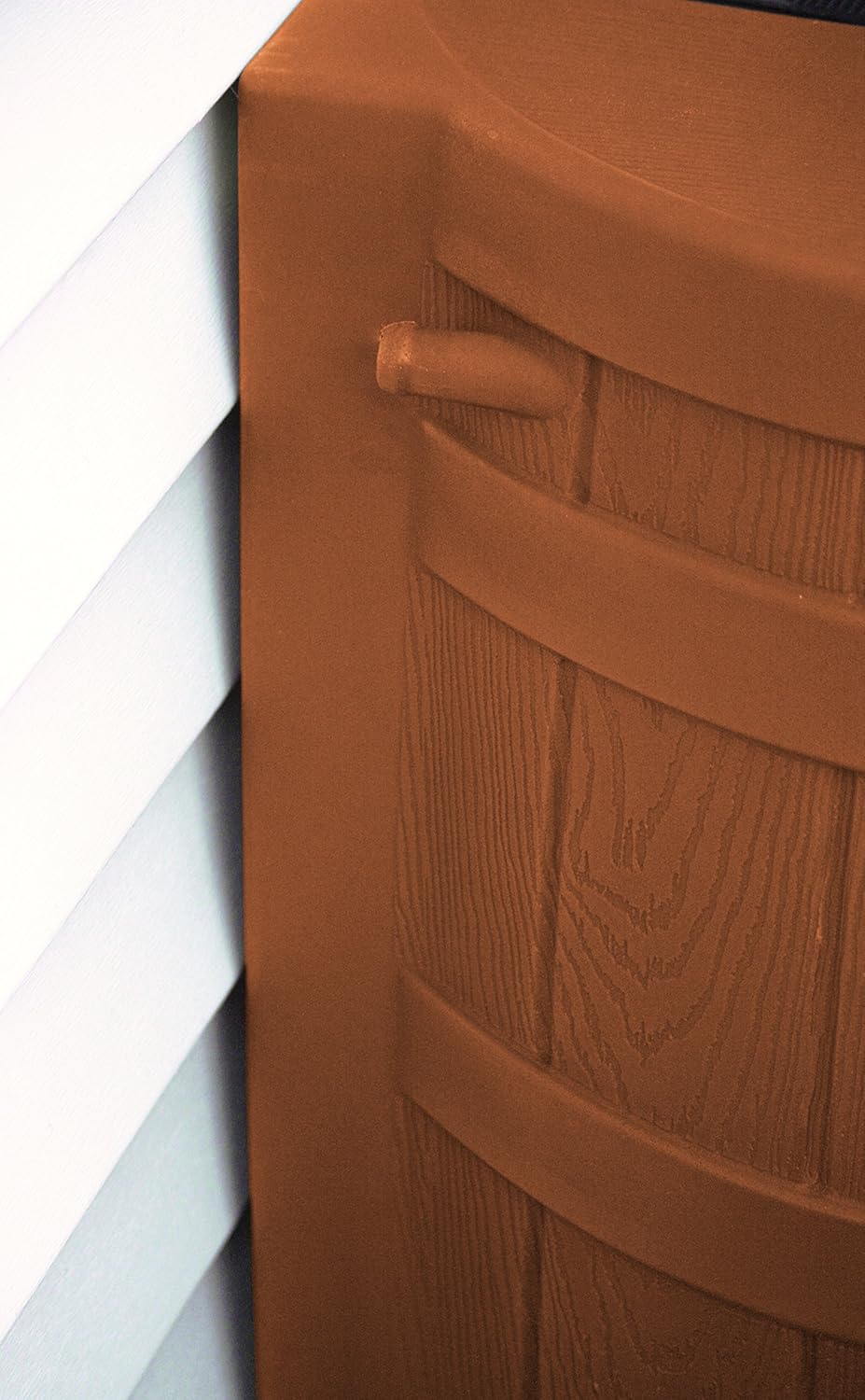- Ensure a backup water supply for your home and garden using these faux wood rain barrels to collect rainwater from the gutter.