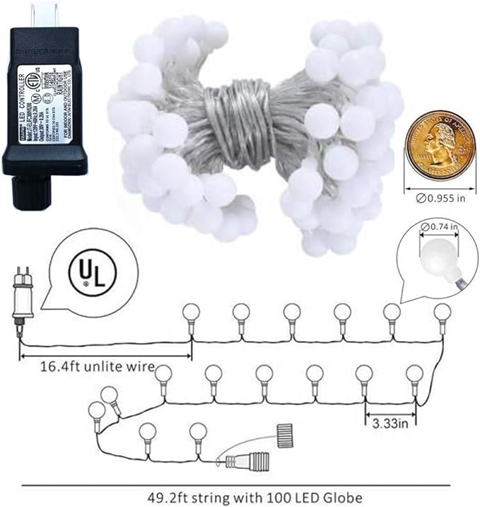 - Led Globe String Ligths: Plug in 100 LED 49ft(33ft String Lights,16ft Lead Wire) Warm White Globe String Lights-UL Listd, more durable