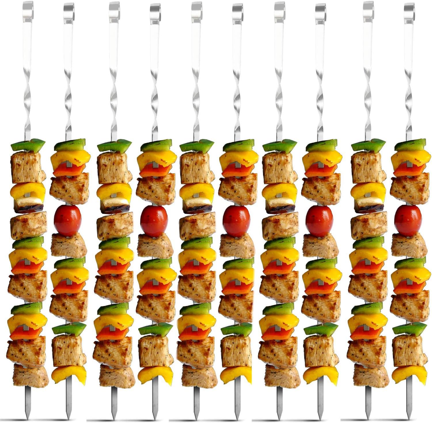 - EXTRA LONG PERFECT SIZE Crafted with PREMIUM AISI 430 stailess steel, our large BBQ kabab skewers are durable, oven and grill safe and the blades are rust resistant for long term use