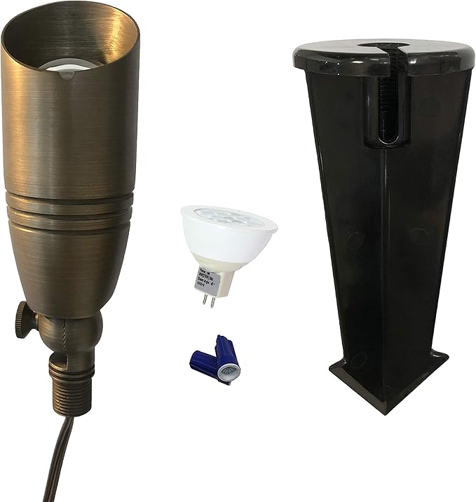 GKOLED UL Listed Solid Brass Landscape Spotlight, Low Voltage Outdoor Directional Uplight, with 5W MR16 LED Bulb & Large Rugged Slot Spike, 12V AC/DC Garden Patio Spot Up Light (10 Pack)
