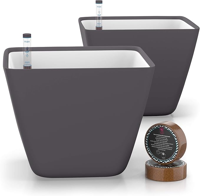 - Ideal for busy plant parents! With our planter pots self-watering feature, you don’t have to water plants for over 10 days ! Our smart pots for plants also include a water level indicator to take the guesswork out of watering, so you know exactly when to add water. And – just for fun – we’ve also added a special dial on top of each measuring valve, so you can measure the growth of your plant and track its progress! Turn that black thumb into green thumb! Comes with clear instructions.