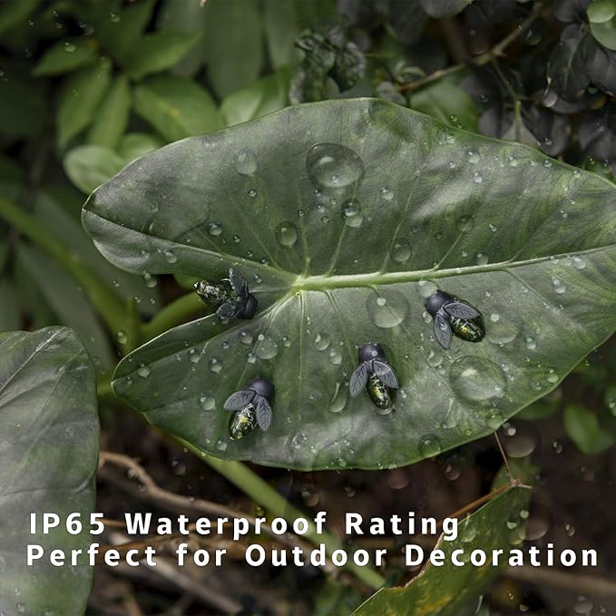 - 【Attractive Firefly Shape Design】Vivid and realistic Firefly solar powered led flickering string lights with 30 LEDs.Great in trees, fences, garden or pool areas, beautiful spring outdoor christmas decoration. Transform your yard into an enchanted evening in nature with these Flickering Fireflies.