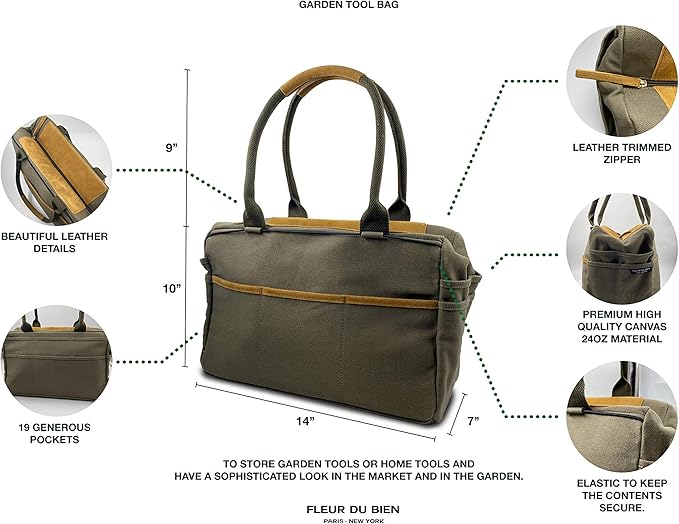 - KEEP EVERYTHING ORGANIZED: With 19 pockets and a 24oz large capacity, our gardening canvas tote bag gives you all the space you need to keep your tools organized. It’s made using durable canvas material that’s both dirt and water resistant