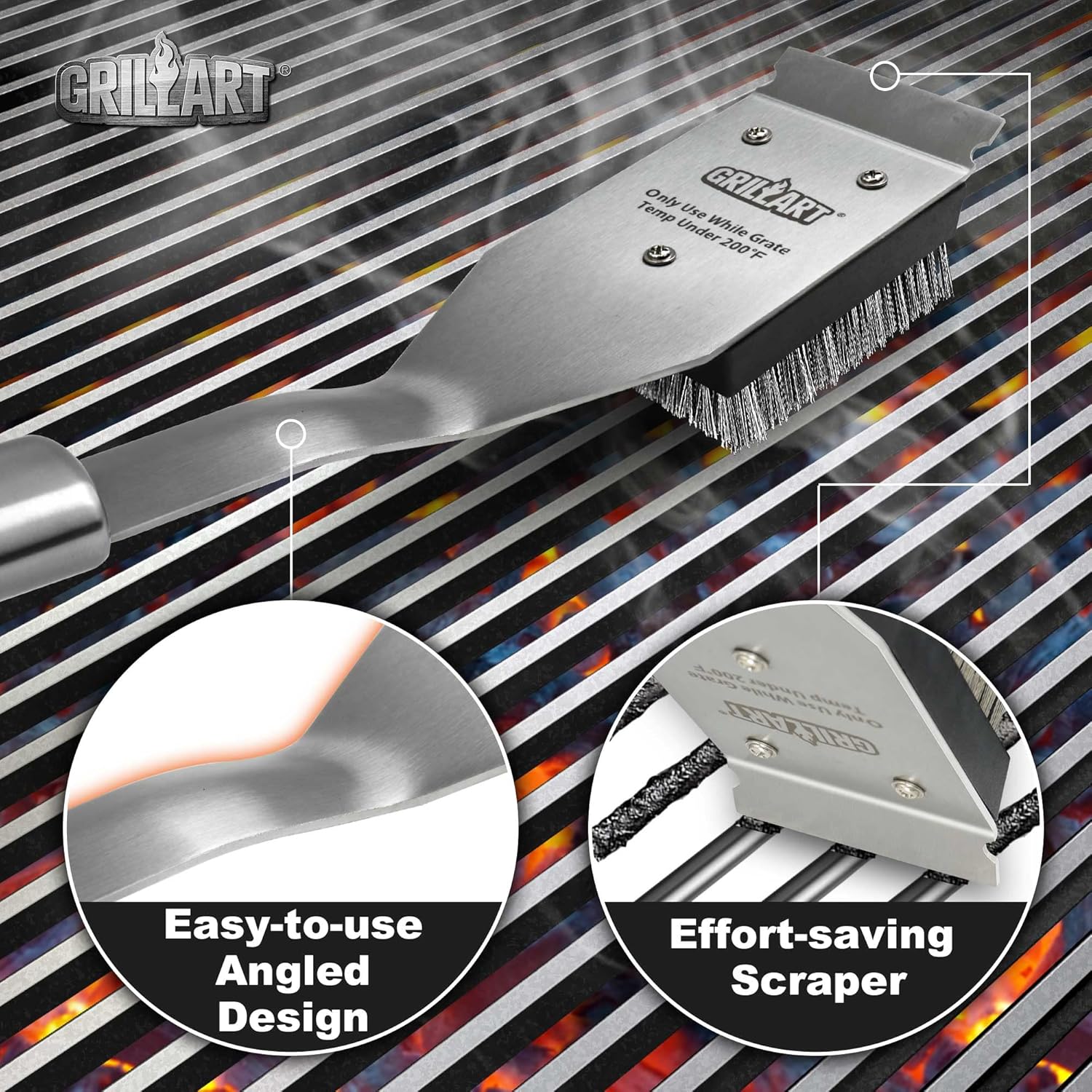 GRILLART Grill Brush and Scraper, Wire BBQ Grill Brush for Outdoor Grill, 16.5” Grill Cleaning Brush BBQ Grill Accessories, Safe Grill Cleaner Brush-Ideal Gift for Men/Dad BBQ Brush for Grill Cleaning