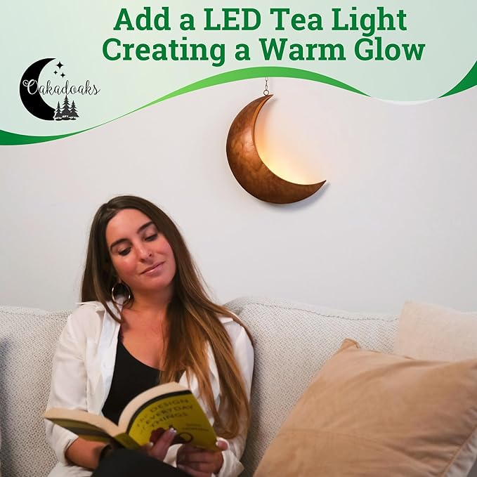 - INSPIRED BY THE COSMOS, this unique PATENT HANGING CRESCENT MOON PLANTER adds a touch of twinkle and CELESTIAL love to any space. Featuring the perfect vintage brushed finish, this eye catching handmade piece of art adds subtle gold tones to any room decor. It's perfect for hanging succulents or Indoor and Outdoor hanging plants require little water and shallow depth. Add some trailing little LEDs or battery TEA LIGHTS to this dreamy planter for an ambient glow to a quiet corner.