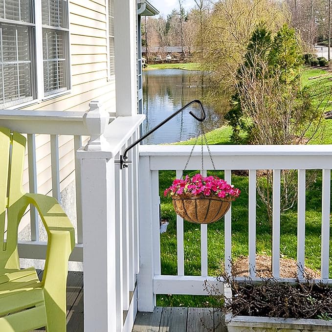 11 inches Fence Deck Hook Rail Hook Hanging Hook Mounting Kit Heavy Duty Bird Feeder Hook, Decorative Hook Hanger for Bird Feeders, Planters, Suet Baskets, Lanterns on Balcony Porch Railing Fence