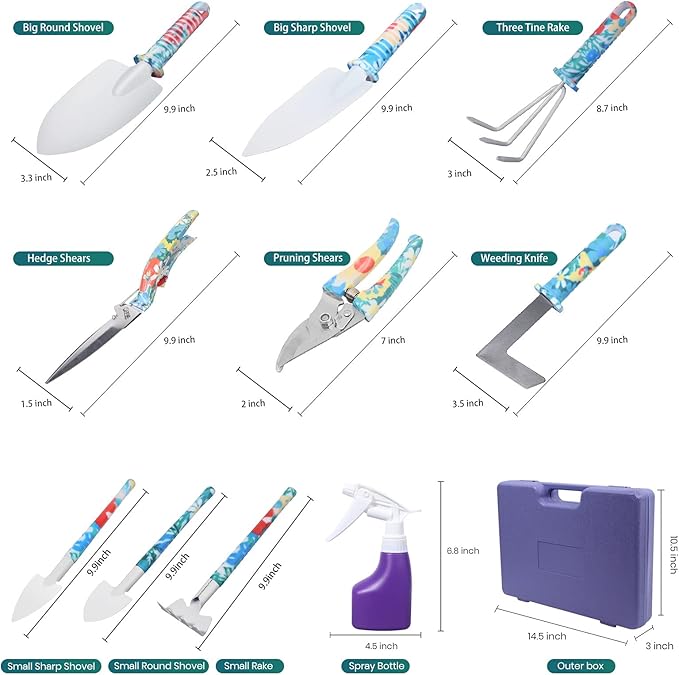 - Nice Garden Tool Set: This garden tool kit is an ideal gardening set for women.With the fashion cute appearance and fully functional tools, your girlfriend, wife, mom or grandma will love it