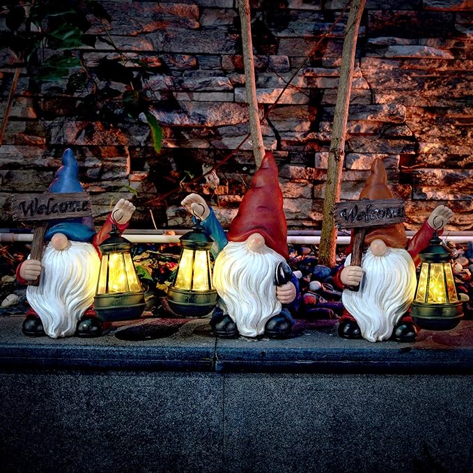 - 【Enjoyable Presents】This yard gnome garden décor figurines is one of the best gifts. Our garden statue and solar light can be applied to light up the backyard, lawn, pond, swimming pool or garden, and can be given to your family and friends on Mother's Day, Christmas, birthday and housewarming.