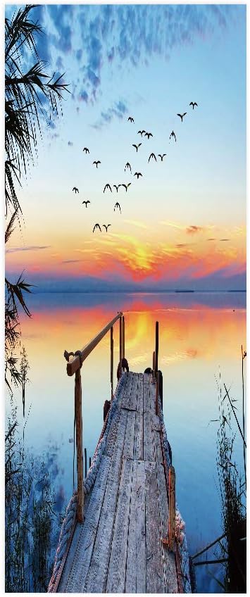 3D Pier Door Stickers - Blue PVC Waterproof Peel & Stick Wall & Door Decals - 37.4" x 84.6" - 2 Pieces