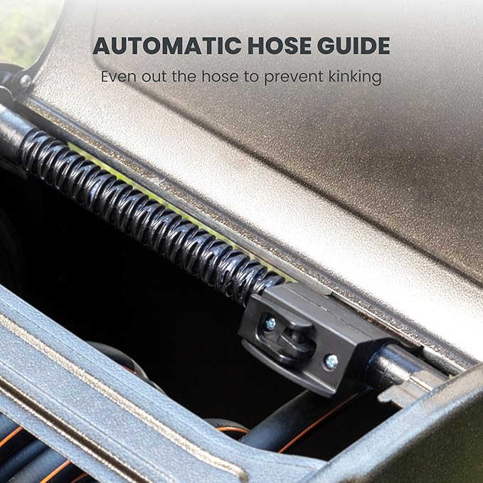 - EASY WINDING: Make garden watering simple and easy! The easily assembled crank handle and the hose guide help you manually wind the hose evenly around the reel with less mess.