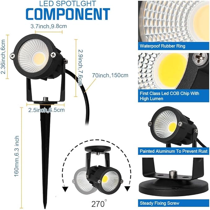 - 【Real 9W Landscape Spotlights Super Brightness Compared with others】Unlike others false wattage mark,our products are real 2 Pack 9W LED COB chip,which is not replaceable, brightness is equivalent to 60W incandescent lamp. Our Spotlight Desk or Wall Mount Accent Lamp is the perfect addition for garden or business.