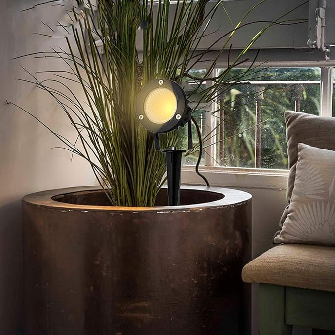 - 【Roatable & Flexible Angle Adjustment】60° Beam Angle, 270 degree adjustable head offers best lights for the Celling,walls, trees, flag,fences;widely used for garden, yard patio pathway outdoor decoration,9W LED outdoor spot light with 3000K warm white light, creates a beautiful lighting effect for accent lighting. Perfect for potted plants, flag spotlight, shadowing lighting, etc.