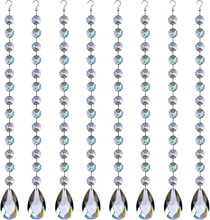 • VALUE PACK- 8 strands teardrop crystal chandelier prisms, each crystal prism include 1pc 2”/50mm teardrop pendant connected 13pcs 0.55”/14mm octagon beads with stainless jump rings