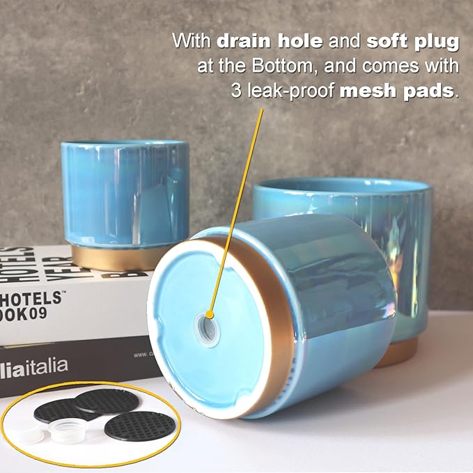 Gepege Ceramic Pots for Plants, Rainbow Pearl Glaze Planter with Drainage Hole, 6.0 inch+5.0 Inch+4.0 Inch. Indoor-Outdoor Large Round Succulent Orchid Flower Pot