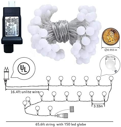 - Led Globe String Ligths: Plug in 150 LED 65.6ft(49.2ft String Lights,16.4ft Lead Wire) Warm White Globe String Lights with Bulbs-UL Listd, more durable. 16.4ft Lead Wire allows you to easily connect to an outlet