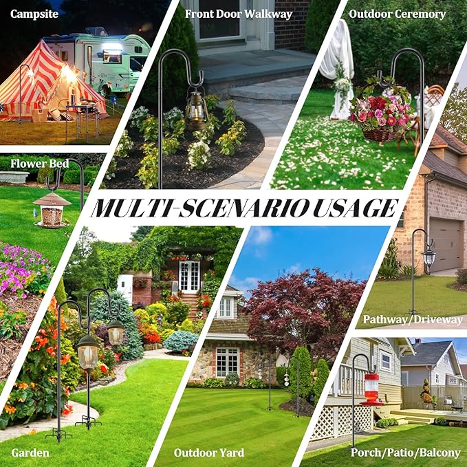 - All-Season Versatility for Every Outdoor Occasion:More than just for bird feeders! Use this garden hook to hang seasonal decorations like flower baskets in spring, solar lights in summer, Halloween lanterns in fall, or wreaths at Christmas. Ideal for Outdoor yard, garden, flower bed,front doors, patios, walkways, and even campsites.