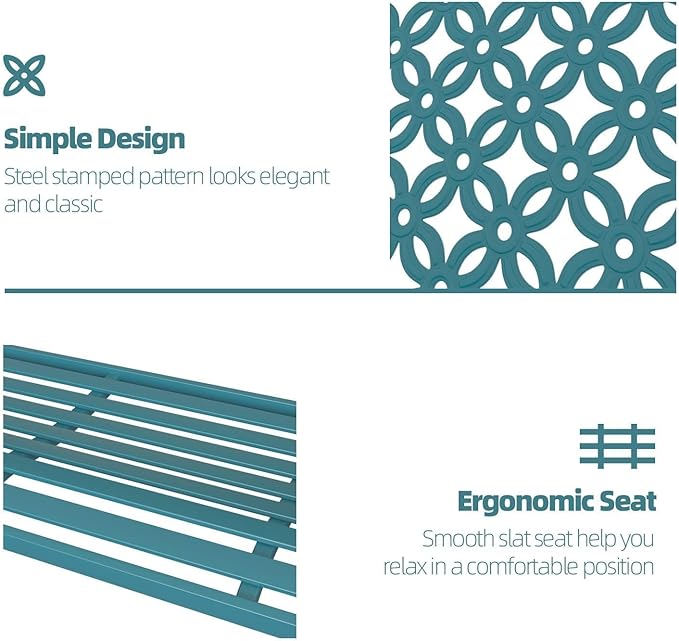 - Feature: This garden bench is with powder-coat frame finish, rust and UV resistant and fade-resistant,even with the harshest of seasons, it ensuring the bench looks great