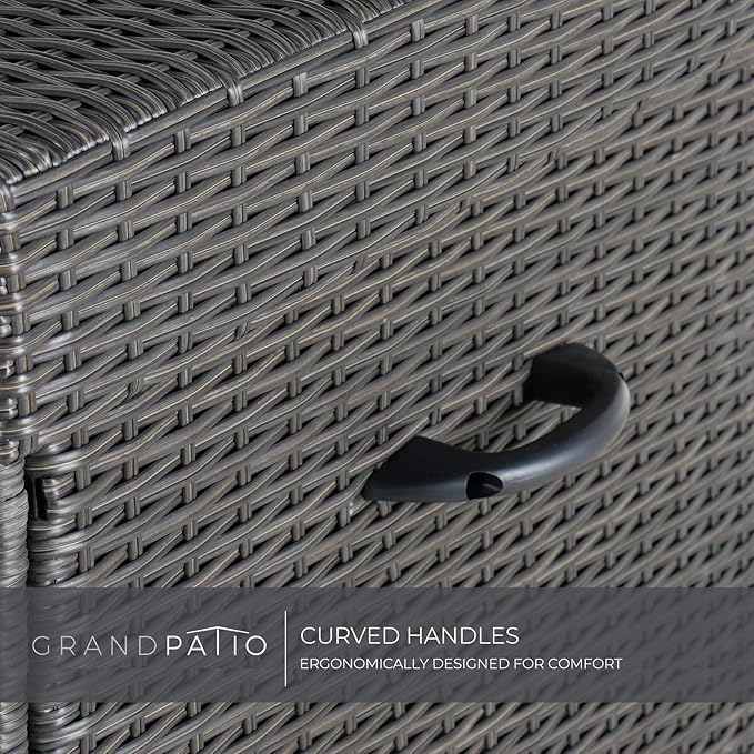 Grand patio 170 Gallon Storage Box, Dark Brown PE Wicker, Minimalist Style, Water Resistant, Flip Top, Smooth Wheels, for Patio Furniture Cushions, Garden Tools, Pool Accessories
