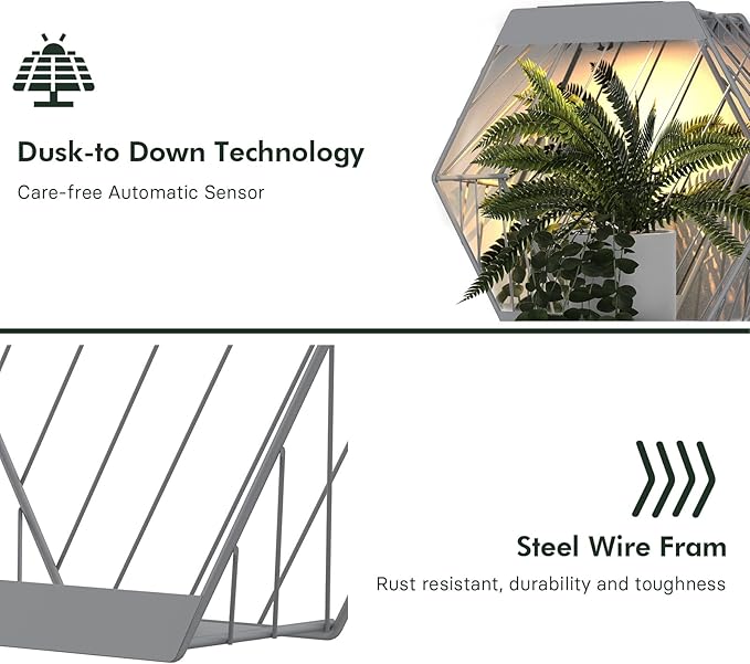 Grand patio Outdoor Leiden LED Solar Hexagon Wall Sconce Planter, with Dusk to Dawn Sensor Decor Wall Lighting for Garage Doorway Patio Yard, Cement Grey (L-Linear)