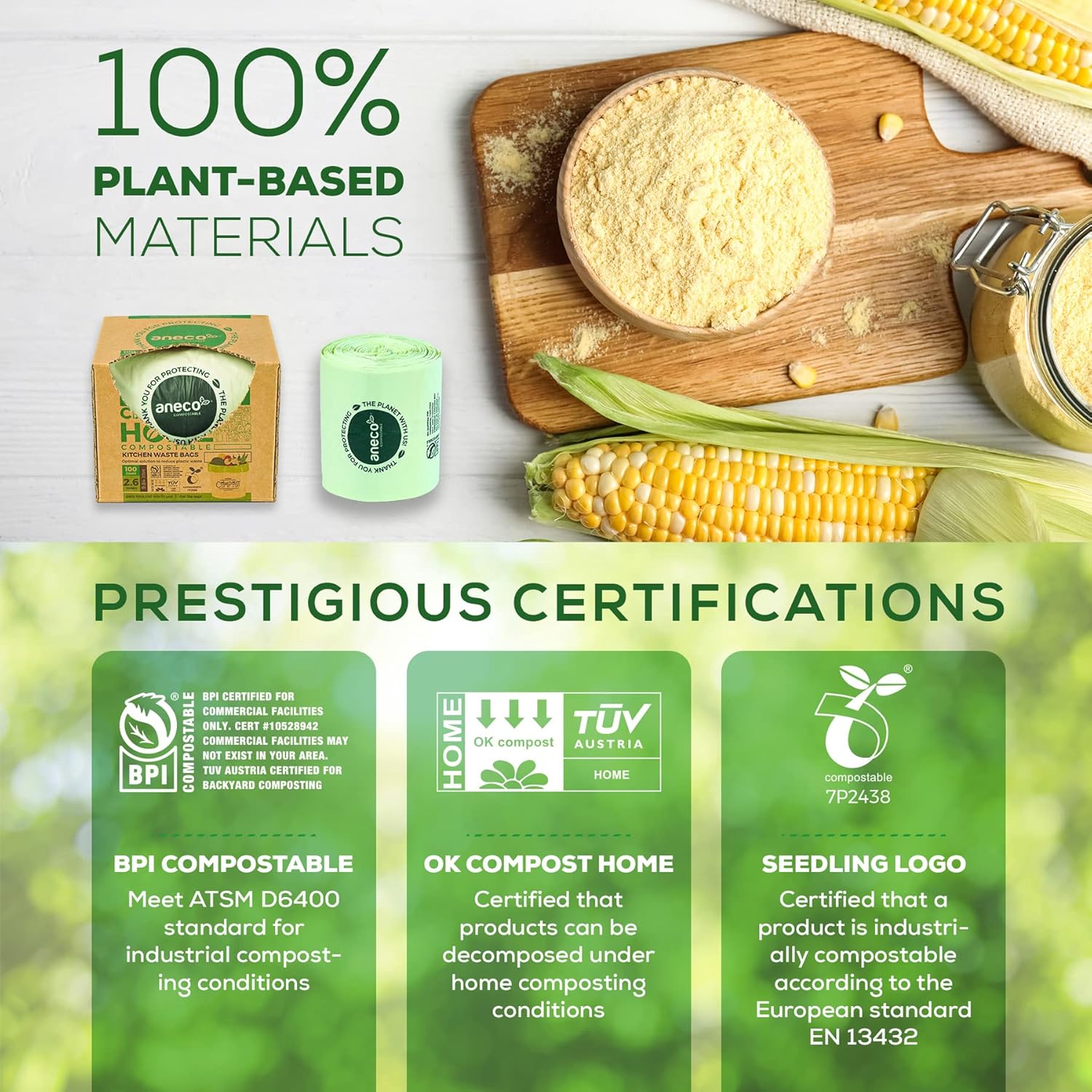 - 🍀 Proud to be one of few HOME compostable trash bags in the market, ANECO Compostable bag can break down completely not only in industrial facilities but also in home system. Use these bags to collect kitchen scraps and put them straight into the compost dumpster, or bury and turn them into valuable compost for your garden
