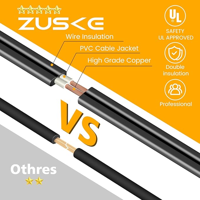 - 【IP65 Waterproof and Double Security】- Designed with an IP65 waterproof rating and equipped with aging-resistant heavy-duty wires, the patio lights can withstand all weather conditions, ensuring year-round outdoor use. The shatterproof plastic bulb design also ensures your family's safety, even if the string lights fall from a high place. The outdoor lights have ETL certification to ensure product safety. With Zuske Outdoor String Lights, enjoy peace of mind while lighting up your patio