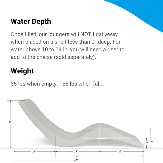 - SAFE FOR ALL POOLS - Whether your pool is saltwater or chlorine, vinyl or fiberglass, commercial or residential, this in-pool lounger works in depths up to 9” of water; for deeper ledges, please see our Aqua Outdoors Risers (sold separately).