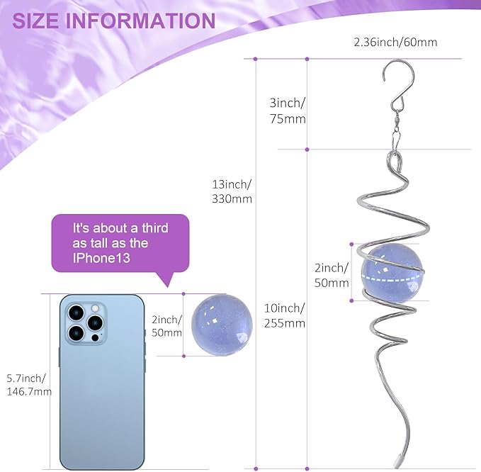- 【 Enjoy Magic Visual Illusion 】This beautifully clever yet simple gazing ball spiral tail is designed to create a stunning optical illusion. The glass ball appears to float and dance in the air as the magic glass ball spiral tail spins, creating a magical visual illusion that has a calming and relaxing effect on the mind. The Spiral Tail Wind Spinners can reduce anxiety and improve mental focus, making it perfect for creating a relaxing atmosphere in your home, garden or yard.