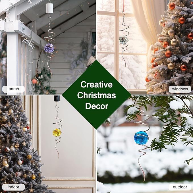 - 【 High Quality Spiral Tail Decor 】This stainless steel wind spinner spiral tail is made of 304 stainless steel wire, the colored ball is made of pure solid K9 crystal glass material. The crystal glass balls combined with stainless steel wire are colorful shining. Exceptionally resistant to inclement weather, the ball of the spiral tail will not fade even in direct sunlight. There are many colors to choose from for this decorative spiral wind-spinner to match any decor.