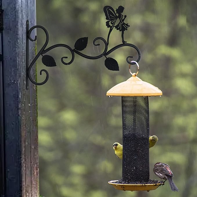 - UNIQUE APPEARANC: Hand forged wrought iron metal hangers brackets with 3D angel design offer a charming, attractive natural look. A dark finish stunningly complements anything that hangs from it, adding elegance and beauty to your home or garden. Curved hooks hold your hanging items securely in the strong wind. Decorate your indoor and outdoor living space