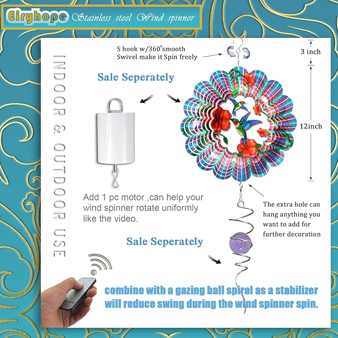 - 【 Surprising Hummingbird Gifts 】The Mandala Hummingbird Wind Spinner symbolizes passionate love. This is definitely the perfect hummingbird gift for hummingbird lovers, decor enthusiasts and gardeners. This 3D hummingbird wind spinner comes with an elegant gift box, making it a perfect surprise for your family, neighbors and friends on occasions such as housewarming, Christmas, weddings, anniversaries, birthdays or as a sympathetic gift for those who have lost a loved one to them.