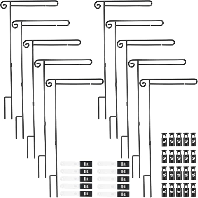 - Package Includes: you will receive 10 pieces of 3-piece folding poles, 20 pieces rubber stoppers and 10 pieces adjustable anti wind clips, abundant quantity to meet your needs; The anti wind clip can fix your flag, prevent your flag from falling off or winding in the winds; The flag stand is designed for garden flag; Please note the garden flag is not included