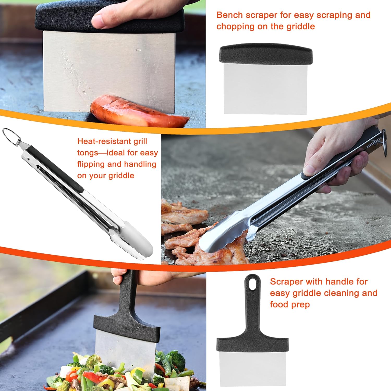 - Professional Grade Flat Top Grill Accessories: Designed for top performance in griddle and flat top grill cooking; provides all necessary tools for a superior cooking experience