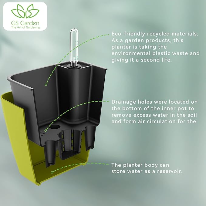 - GS Garden self-watering planters is an ideal plant pot for for All Outdoor/Indoor plants. The special water inlet design can avoid soil collapse and lead to excessive hardening of the flower soil. The root system can fully grow in the soft soil.Ideal for residential and commercial grades