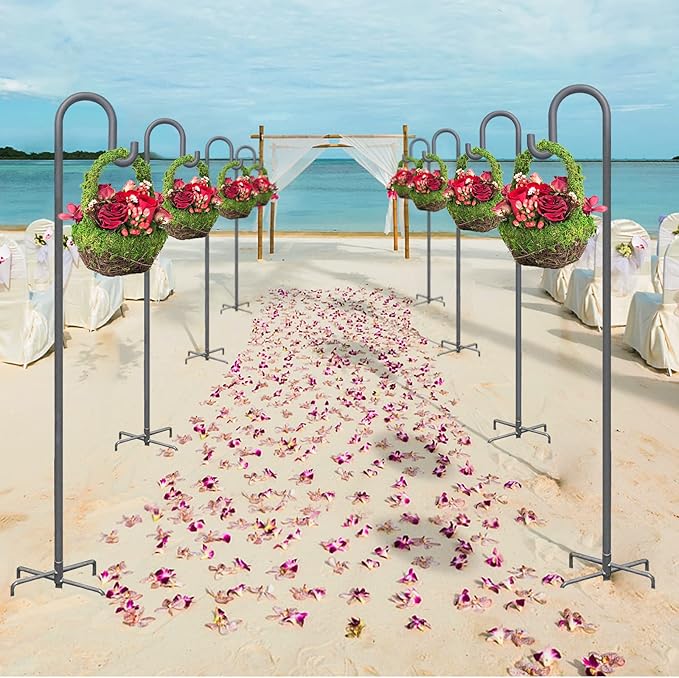 - 【Multipurpose Bird Feeder Hook for Outside】This shepherd hook is perfect for hanging almost anything you want in the garden or patio, such as hummingbird feeders, birdhouses, solar lights, lanterns, wind chimes, small flower baskets, succulents, wedding decorations.