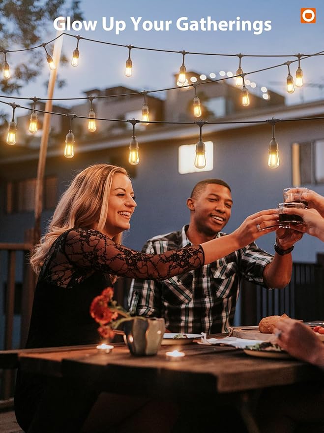 addlon 96FT(48FT*2) LED Outdoor String Lights with Edison Shatterproof Bulbs Commercial Grade Patio Cafe Light, ETL Listed Weatherproof Strand 30 Hanging Sockets for Bistro Backyard