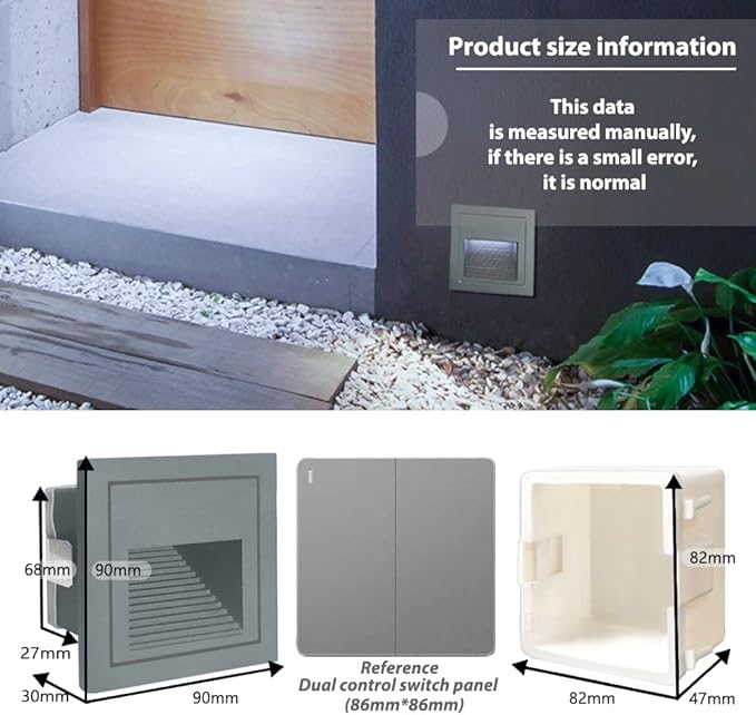 - 【Good quality】Grey shell, cool white 6000K, aluminum corner staircase light step light, IP65 waterproof, suitable for indoor and outdoor. (IP65 can prevent the splashing water, but cannot be installed directly under water)