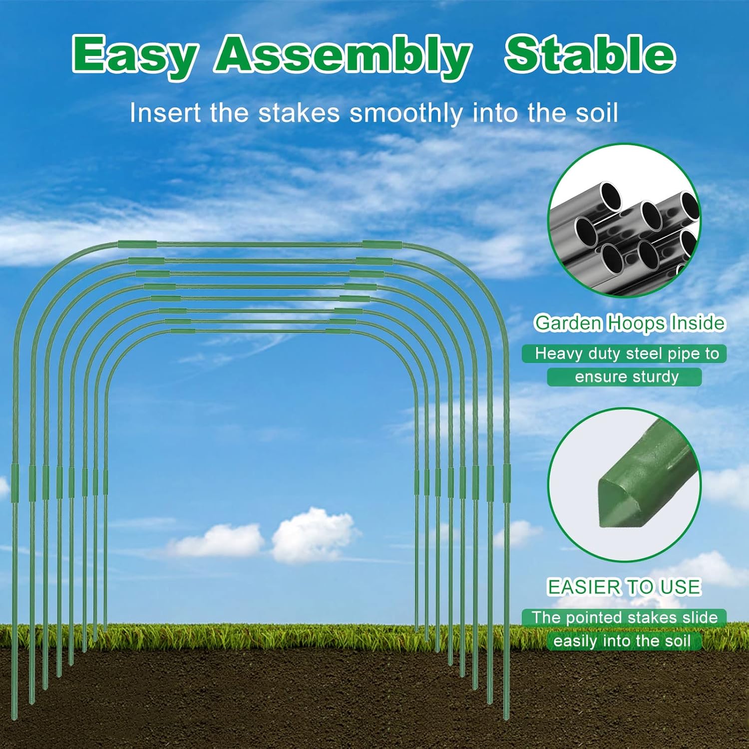 - 🌱【Easy to set up】 --DIY Greenhouse Hoops for Raised Beds Comes With sharpened points on both sides for ease of placement. Washable, Reusable, Flat for storage. Creates a favorable microclimate for your plants. Set up garden tunnel hoops is esay, you can installed less than 5 minutes.