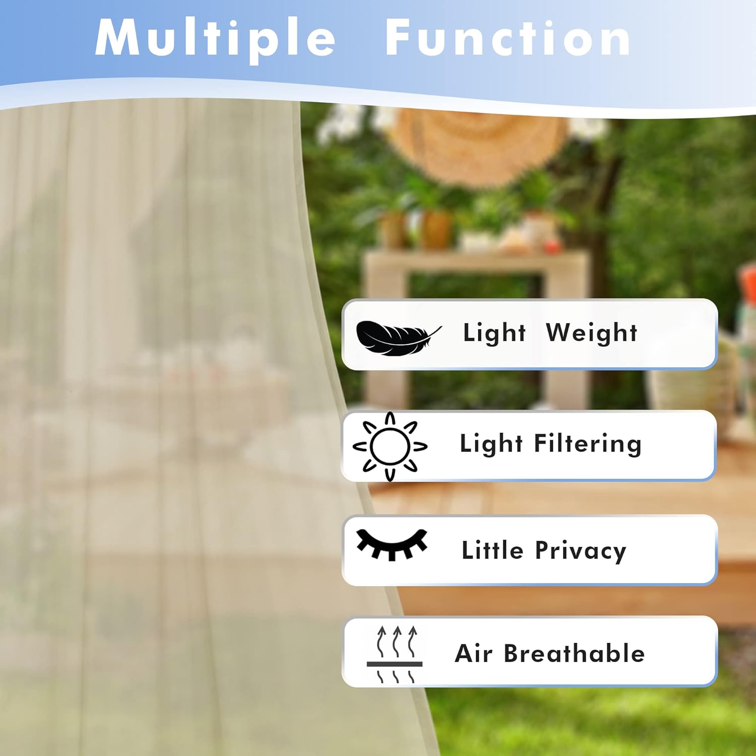 - Waterproof Polyester Fabric - Made with high quality polyester voile fabric that is waterproof and weather-resistant. These outside curtains are designed to provide long-lasting protection against strong sunlight, UV rays.