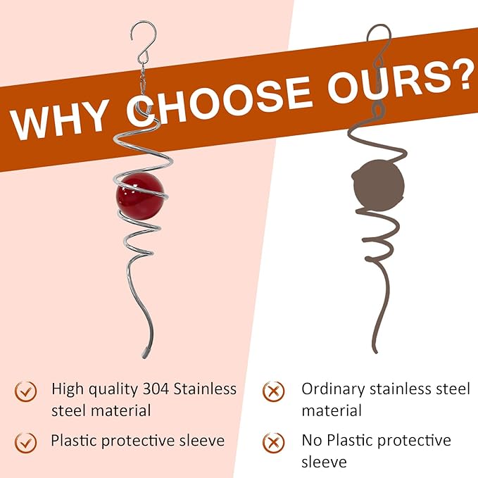 - ✔【Easy to use】The spiral tail wind spinner can't spin by itself ,if you want to make it spin like the video ,need add 1pc motor (not include) ,or combine it with a wind spinner or any rotatable hanging ornament to help it rotate. Come with 1pc 2 inch red glass orb(not paint),1pc silver color spiral tail twister,and 1pc swivel hook accessory, ready to hang and enjoy.