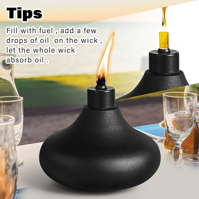 - ✿High Quality Metal Table Top Torches: Our Metal Table Top Torches made of premium metal. durable and lightweight. Each tabletop torches hold approximately 24.5 oz of fuel, allowing the burning time more than 19 hours .