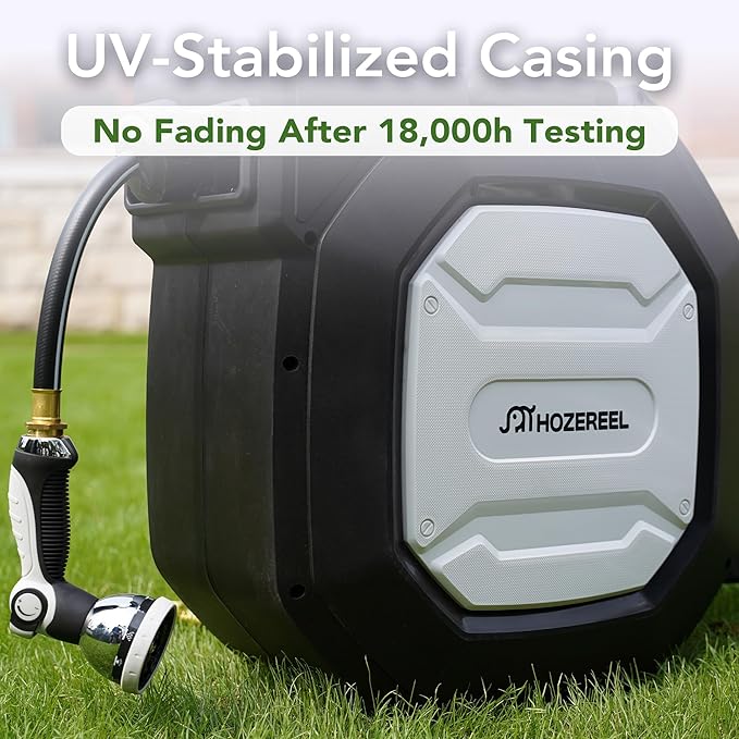 - 【Heavy Duty for Long Term Using】: The HOZEREEL hose reel is well built and no leaks in normal everyday use. The hybrid hose is strengthen construction and the connect fittings are made of brass.