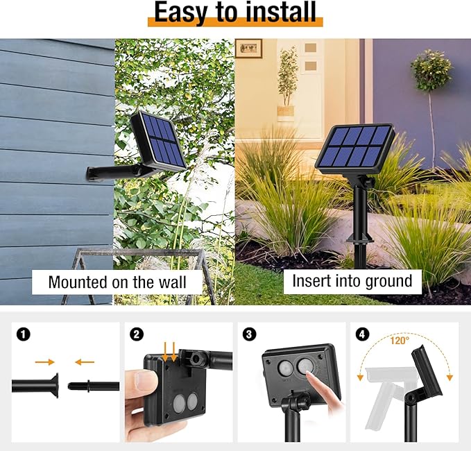 - 4 Packs Solar String Lights for Outside: Each Ultra-Bright twinkle lights solar with 80 LED 33 FT (26.5 ft light string +6.5 ft lead wire), total 320 LED 132 FT. Enough length and lights to increase the decorative range, to meet your different embellish needs