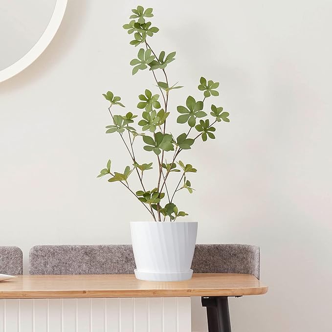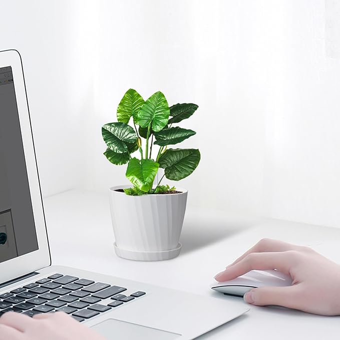 - MODERN MINIMALIST DESIGN - White matte finishing surface plant pot with strip pattern and round shape design bringing out a modern minimalistic styled and elegant. And bottom surface has feet like lines to prevent from sliding. This plastic planter will bring a modern and stylish visual. Great for all house plants.