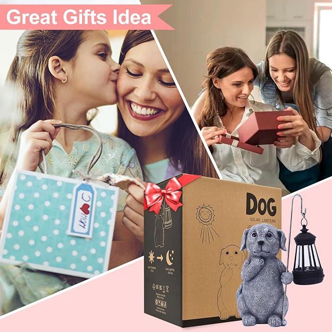 Garden Decor Solar Statues for Mom Grandma Birthdays for Women Sister Wife Lady - Front Patio Balcony Yard Art Lawn Ornaments Porch Outdoor Outside Decorations (Dog)