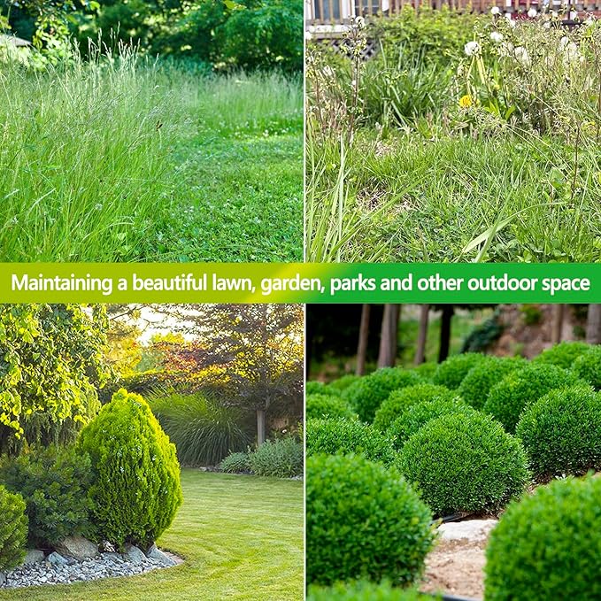 - High Efficiency: Equipped with 2200-RPM speed powerful pure copper motor, making your mowing tasks more stronger and faster. Double saws work at the same time to improve the trimming efficiency and dual action blade structure reduces jams and snags during cutting. (Warm note: clean it after using and kept dry during storage to prevent rust).