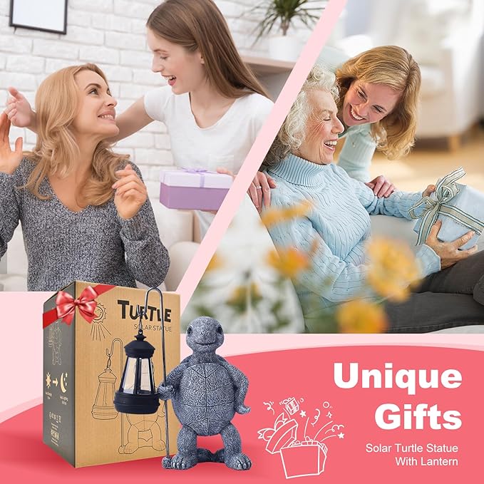 Garden Turtle Statue with Solar Lantern - Outdoor Garden Decor for Outside Yard Patio Balcony Lawn Decor - Unique Gardening Gifts for Mom Grandma