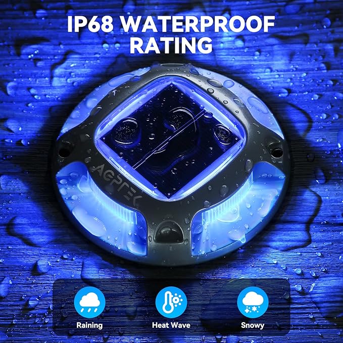 - 【Heavy Duty Solar Lights】Made of Premium Aluminum Material, able to withstand 3 tons of pressure from vehicle, trucks and boats. No need to worry about these marine dock lights being damaged due to crush or hits while located on driveway or outside boat dock.