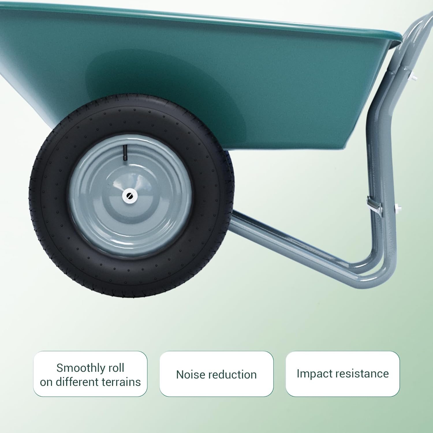 - STABLE DUAL WHEEL WHEELBARROW: The 2-wheel wheelbarrow ensures even weight distribution for a smooth, controlled ride; With 14-inch pneumatic tires, navigating uneven terrain becomes effortless, making the utility wagon ideal for any task