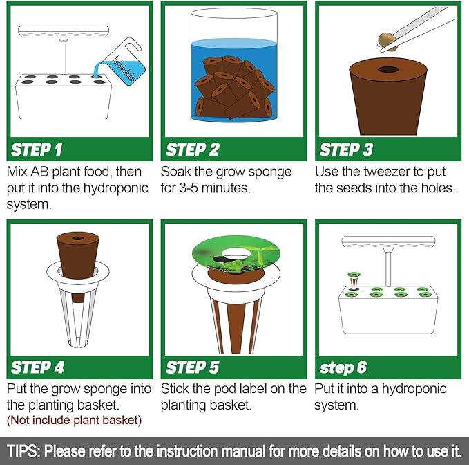- Compatible with Most Hydroponic Systems: You will receive 50 grow sponges, 1 A&B plant food, 1 A&B plant food refill, 50 pod labels, 1 tweezer and 1 manual. The replacement sponges are compatible with most brands of hydroponic systems such as Aerogarden, Ahopegarden, GardenCube, Inbloom, iDOO, etc.
